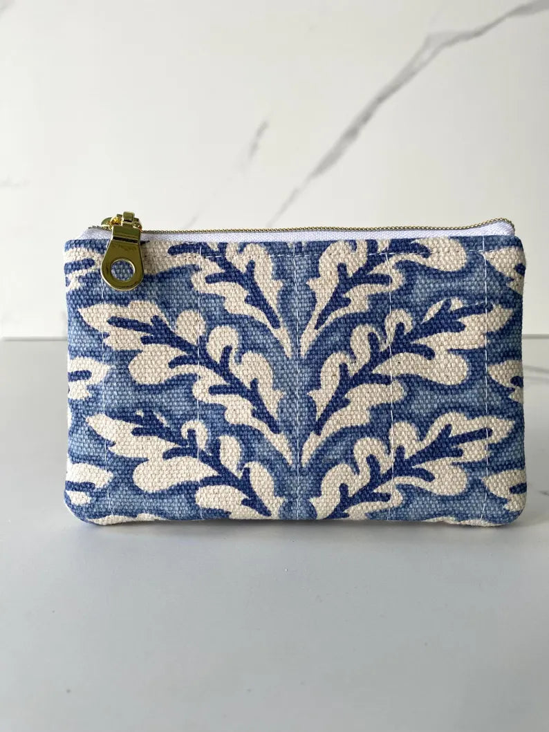 The small quilted zipper pouch is perfect to keep your essentials organized. Use it to hold your credit cards, cash, coins, lip balm and essential oils (just to name a few) but the possibilities are endless.